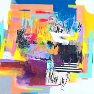 Melewati Tangga Dan Pintu Kecil, 200 x 200cm, Media Campuran diatas kanvas, Karya 2021