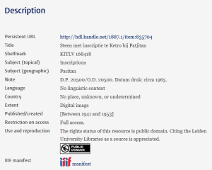“Steen met inscriptie te Ketro bij Patjitan” adalah frasa bahasa Belanda yang berarti “Batu dengan inskripsi di Ketro dekat Pacitan.”